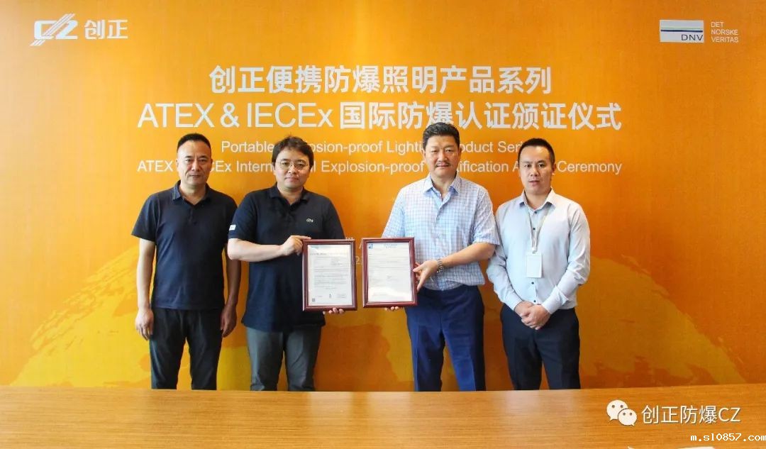 作为对创正在防爆领域辛勤努力的认可,DNV负责人向创正颁发了九款便携防爆照明产品的ATEX(欧盟防爆认证)和IECEx(国际防爆认证)产品认证证书,以及防爆管理体系证书,向创正所取得的成就给予了高度的认可。这些证书的颁发进一步巩固了双方在防爆市场领域中的领先地位,彰显了创正在防爆领域的技术实力和卓越表现。