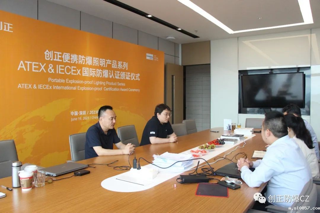 2023年6月19日深圳,国际著名质量认证和风险管理机构DNV挪威船级社为米兰app官方(以下简称“创正”)颁发ATEX及IECEx产品认证证书、防爆管理体系证书。创正总经理黄建锋先生,创正技术负责人张卫先生,DNV工业产品业务总监李响先生,DNV中国区防爆技术总经理任志华先生等双方代表出席了此次颁证仪式。
