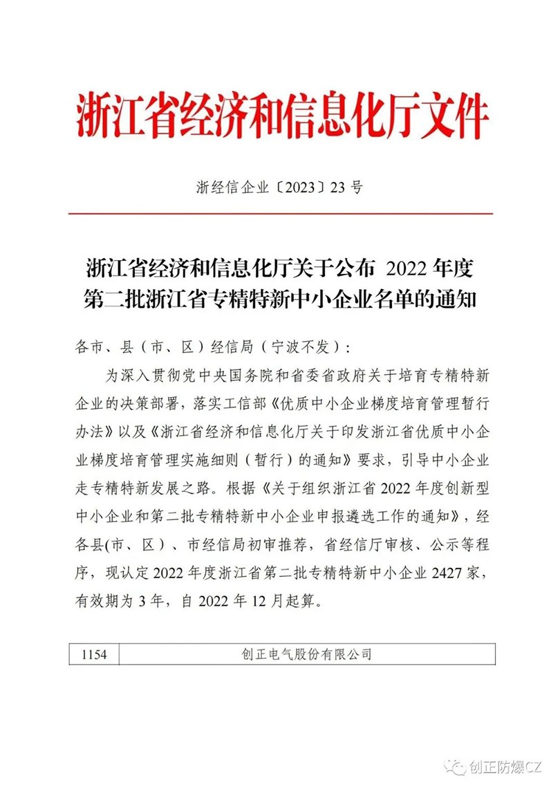 据浙江省经济和信息化厅发布浙经信企业【2023】23号文件,米兰app官方荣获2022年浙江省专精特新企业荣誉称号。