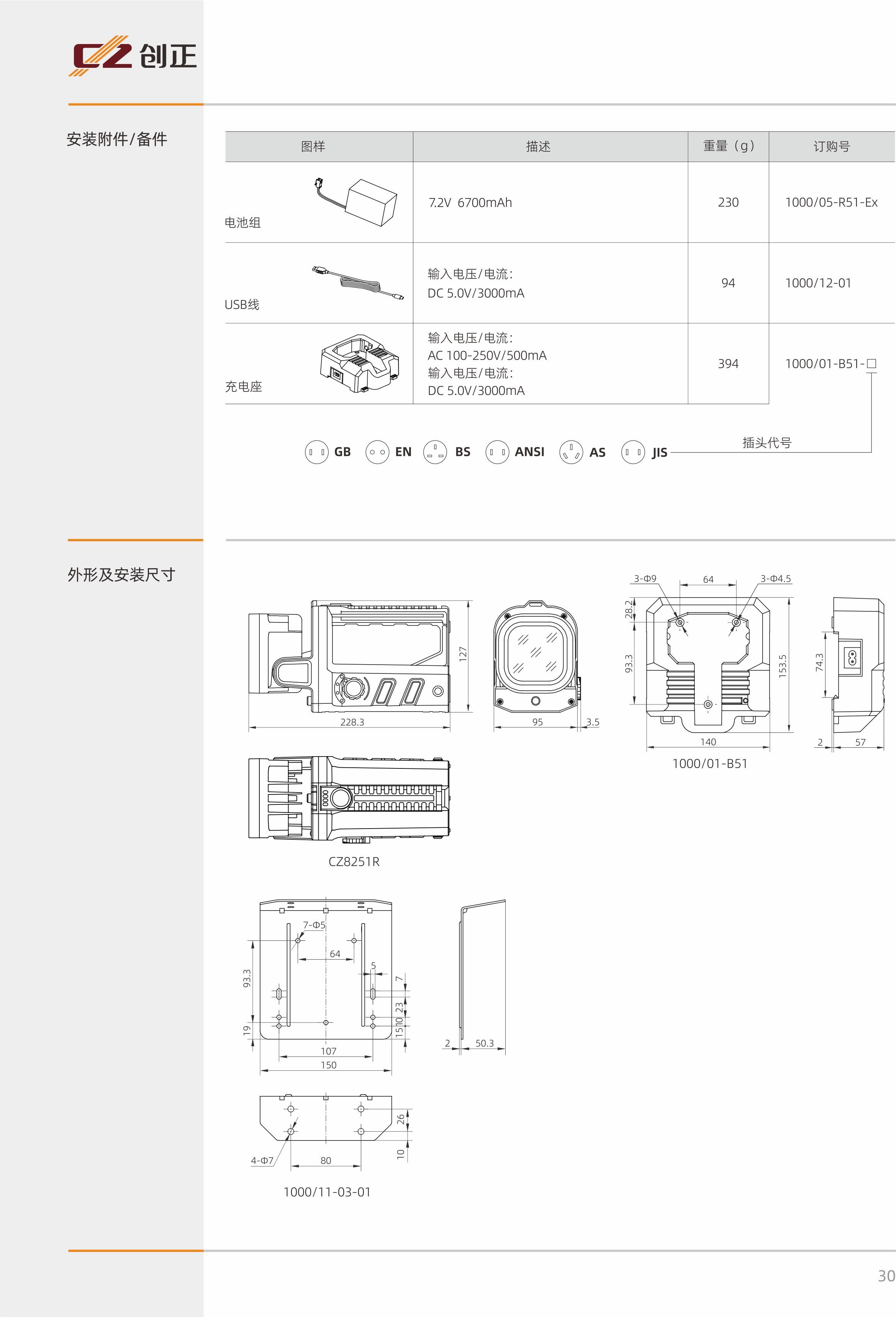 | 充电方式 | 配合1000/10-B51专用充电座充电 |