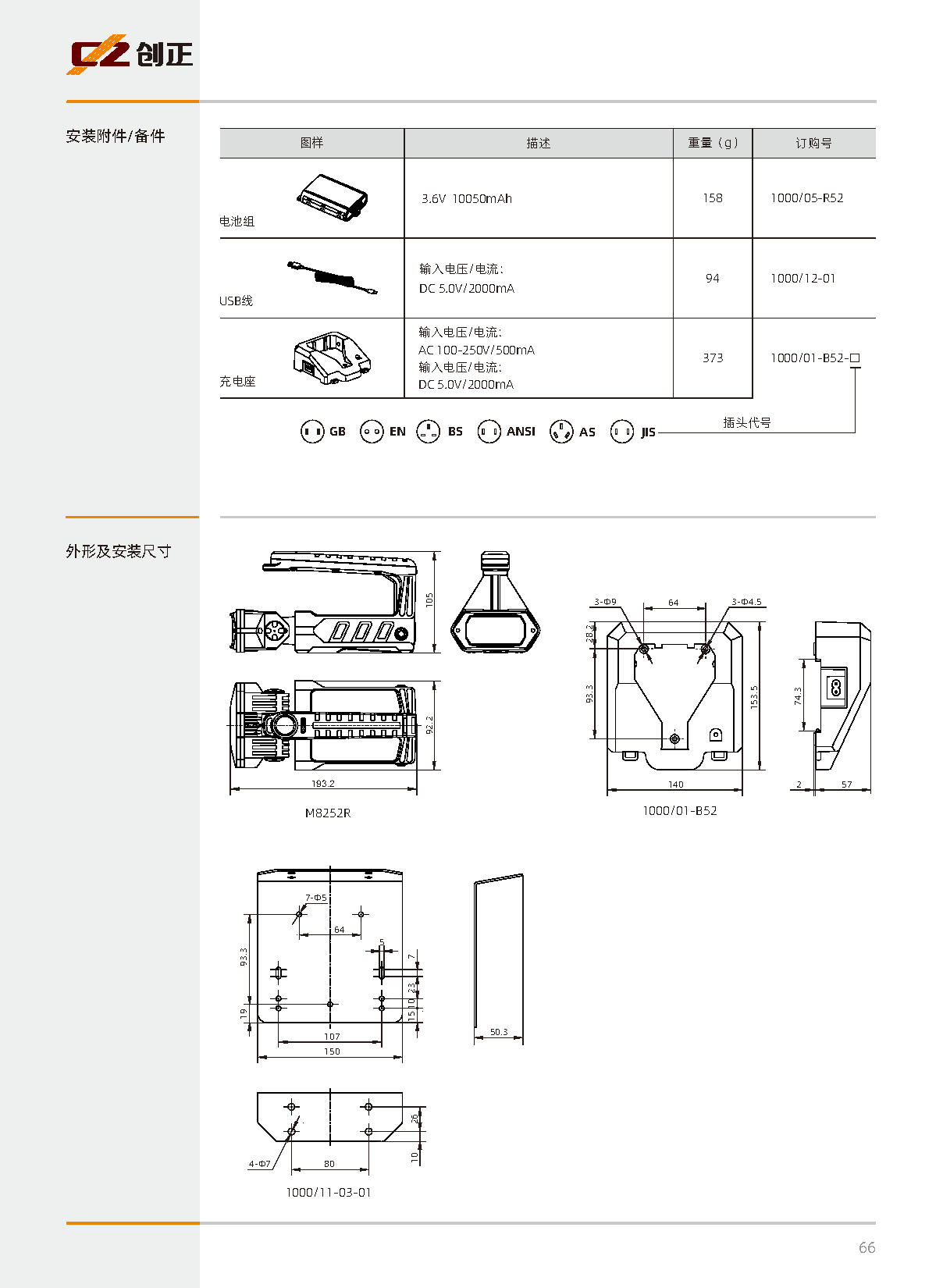 | 充电方式 | 配合1000/10-B52专用充电座充电 |